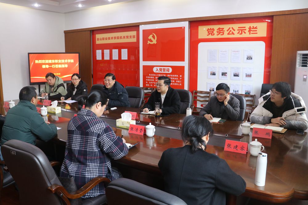 为充分发挥党建引领作用,促进彩神与建东职业技术学院资源的优势互补⚠,实现两院高质量发展,1月5日,建东职业技术学院党委书记王志平一行6人莅临我院调研交流。我院党委书记徐铭👩🦯、党委委员陈刚及部分党员代表陪同调研。