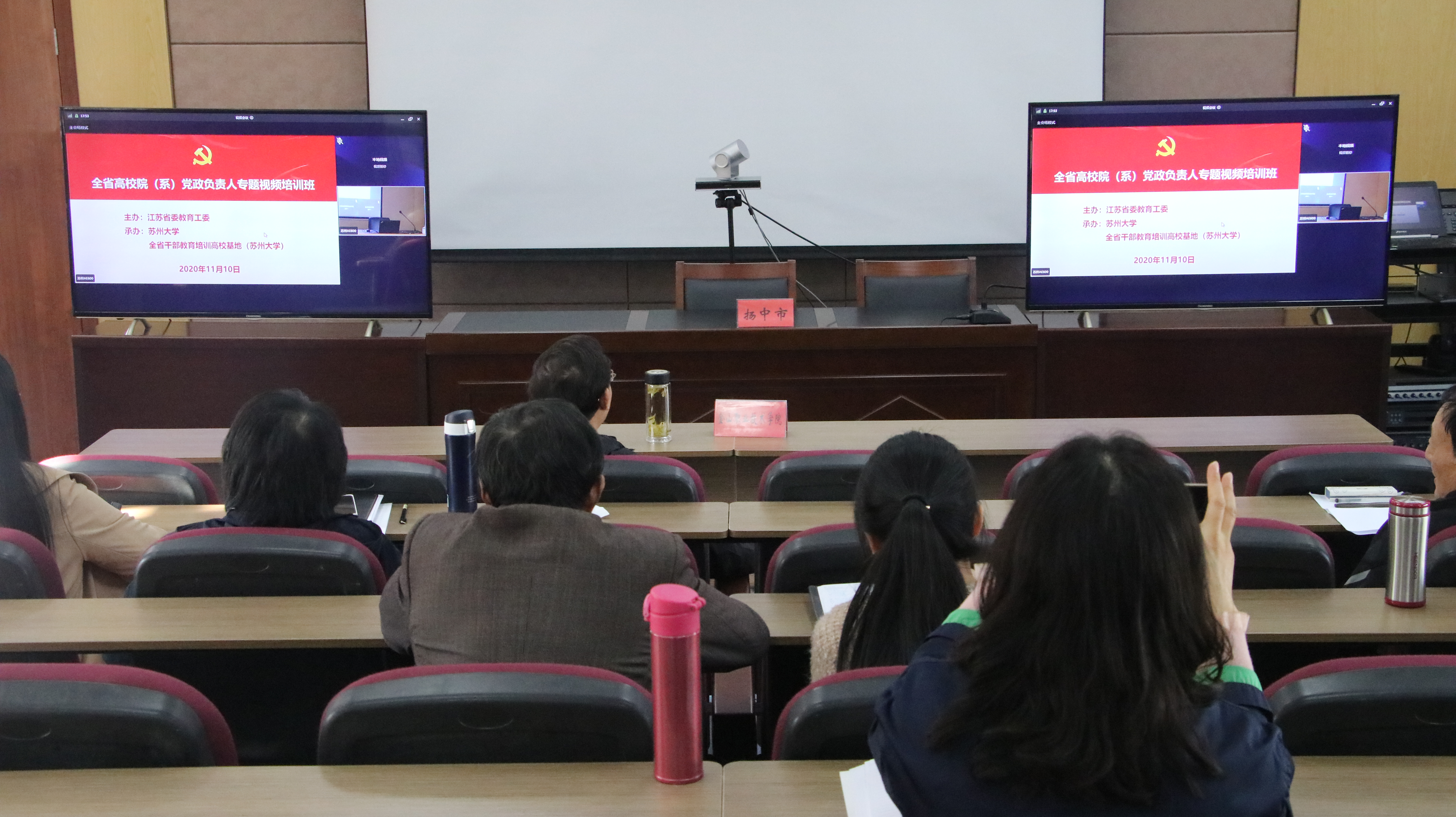 11月10号上午9时,省委教育工委举办了全省高校院(系)党政负责人专题视频培训班。我院在扬中市教师发展中心2楼视频会议室设分会场🥷🏽,学院党政班子成员及各处室👐🏼、系部主要负责人参加培训4️⃣。