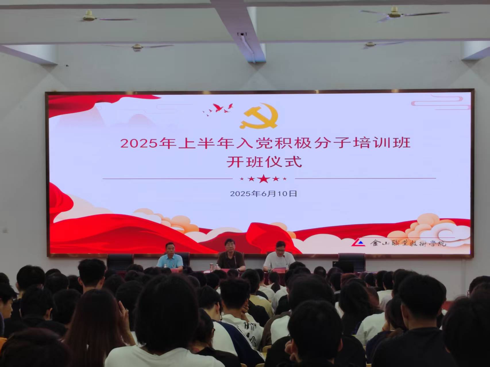 6月10日,我校2025年第22期入党积极分子培训班开班仪式暨第一次专题党课在金山学堂顺利举行。党委书记徐铭出席开班式并作动员讲话,学院党委组织部部长陈刚主持开班式,各基层党组织书记和280余名入党积极分子参加开班式。