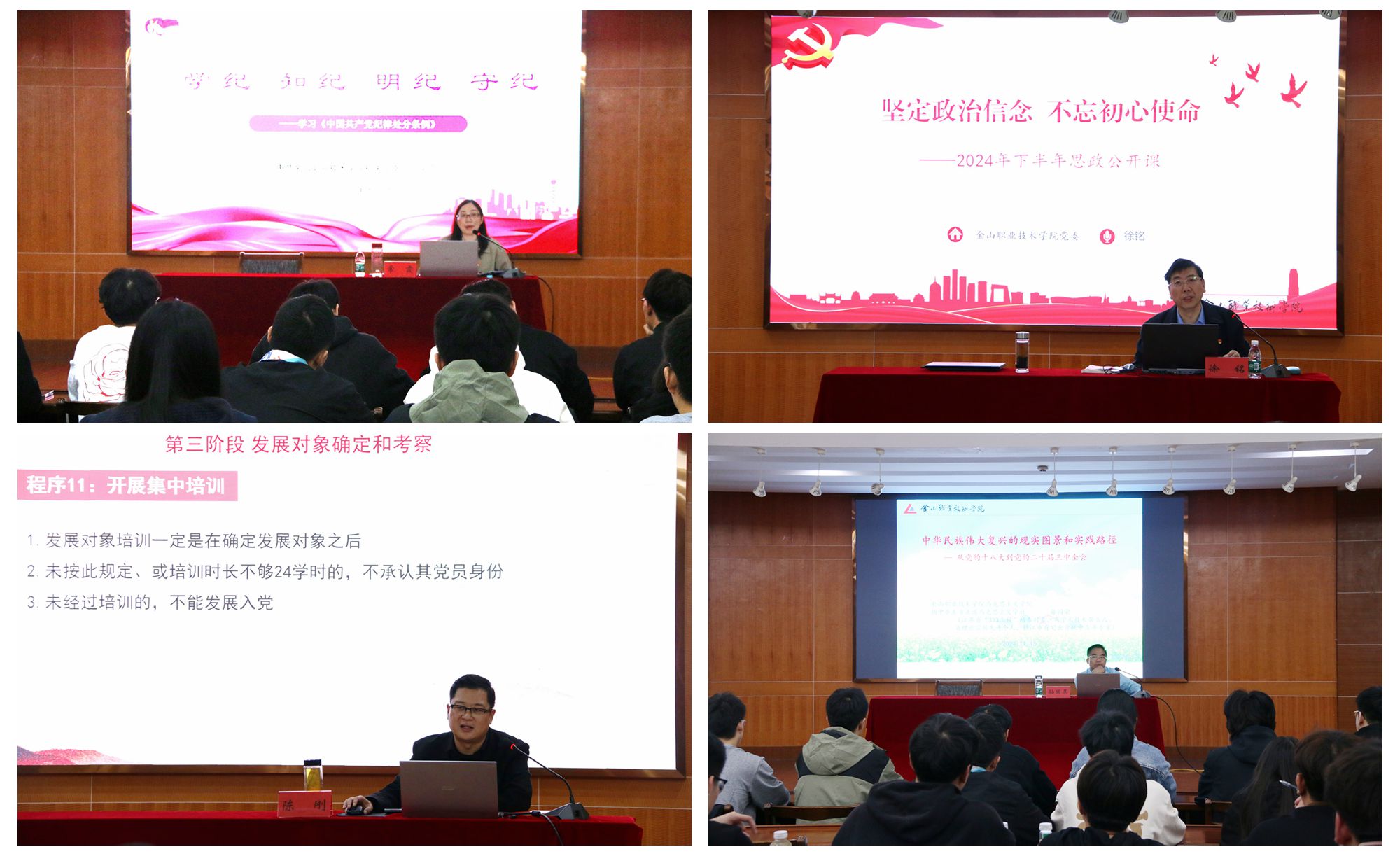 本次培训注重理论学习,筑牢学员思想根基。培训课程以全面加强党史学习教育及深入学习习近平总书记系列重要讲话、重要指示精神为重点,围绕党的基本理论、基本方略🧝🏻♀️,突出党章党规学习开展专题授课。特邀学院党委书记徐铭、党校副校长陈刚👩🏭、纪检委员常霞和马克思主义学院院长孙国荣,分别围绕《入党誓词里初心》、《党章》辅导——发展党员工作流程、学习《中国共产党纪律处分条例》🚏、《进一步全面深化改革,全力推进中华民族伟大复兴——深入学习贯彻党的二十届三中全会精神》等内容进行集中授课💅🏼。每一堂党课都是一次思想的洗礼👩🏼🦱,引导学员全方位学思践悟,坚定理想信念,明确初心使命和责任担当,争做党和国家事业的合格接班人😖。