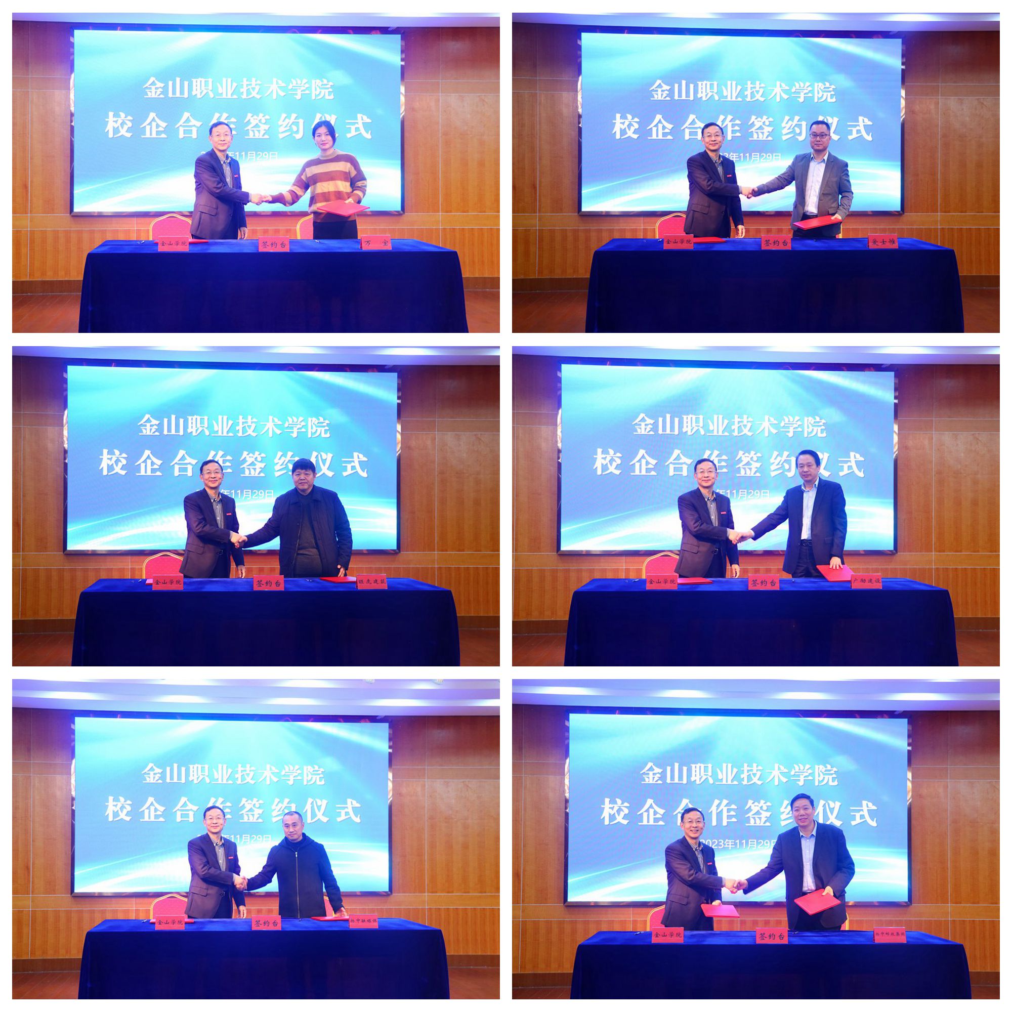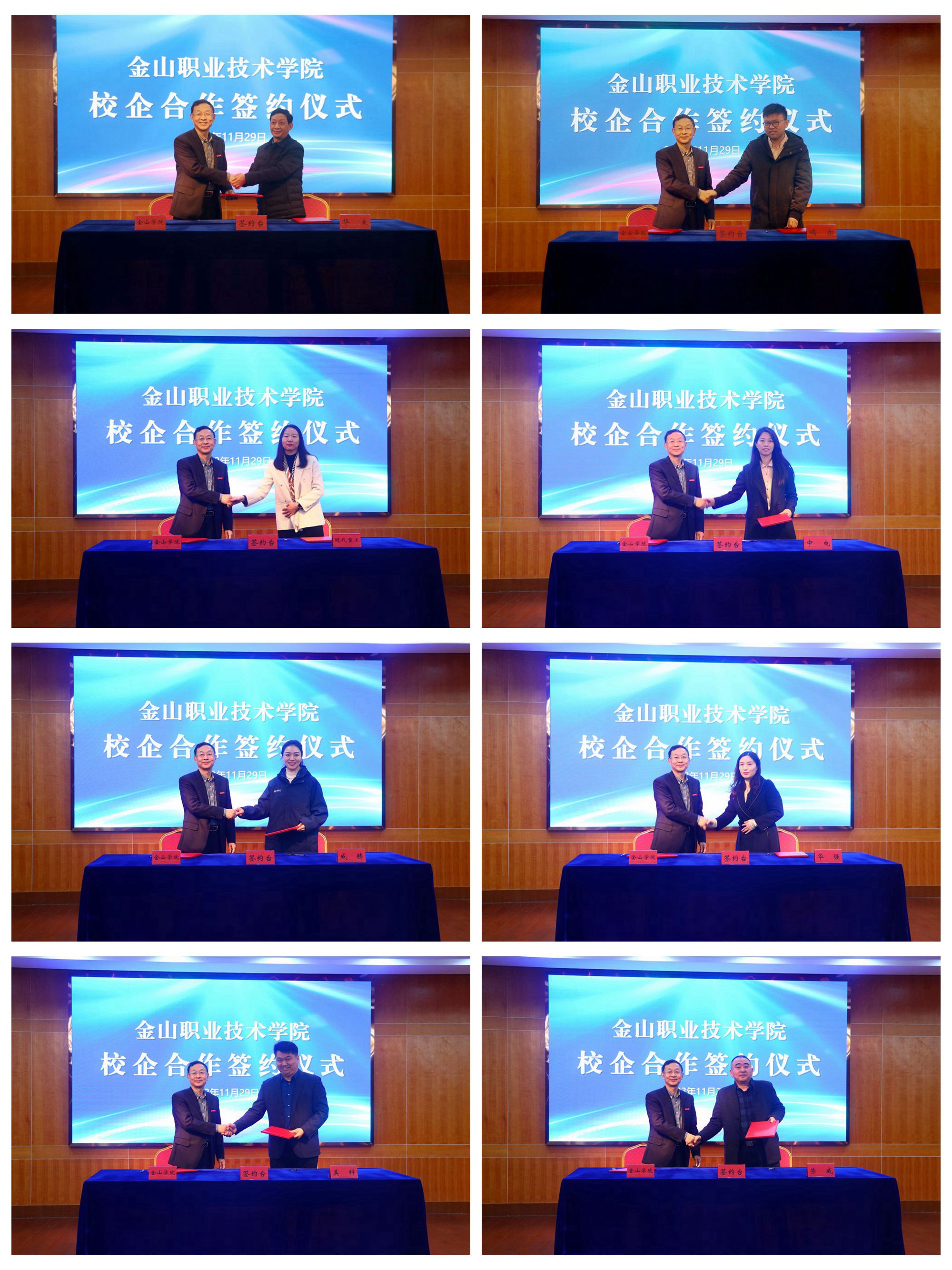 学院执行院长朱小明代表学院与14家企业分别签订校企合作协议。