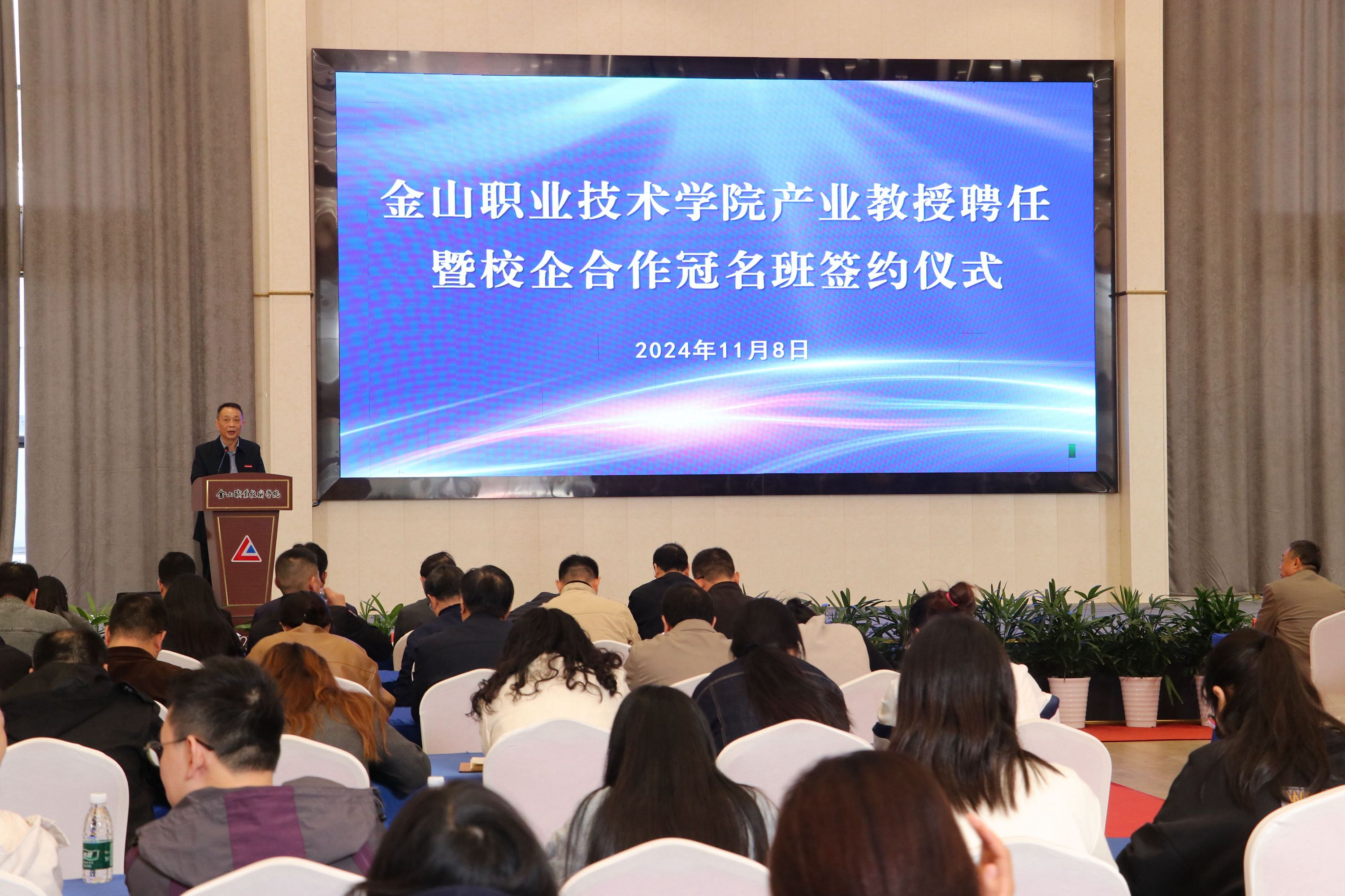 为进一步深化产教融合📌,建设高水平教师队伍,11月8日,我院在金山艺术馆举行产业教授聘任暨校企合作冠名班签约仪式。学院领导班子全体成员、中层干部、产业教授、冠名班企业代表及师生代表参加活动。活动由学院党委副书记王家新主持👨👧👧。