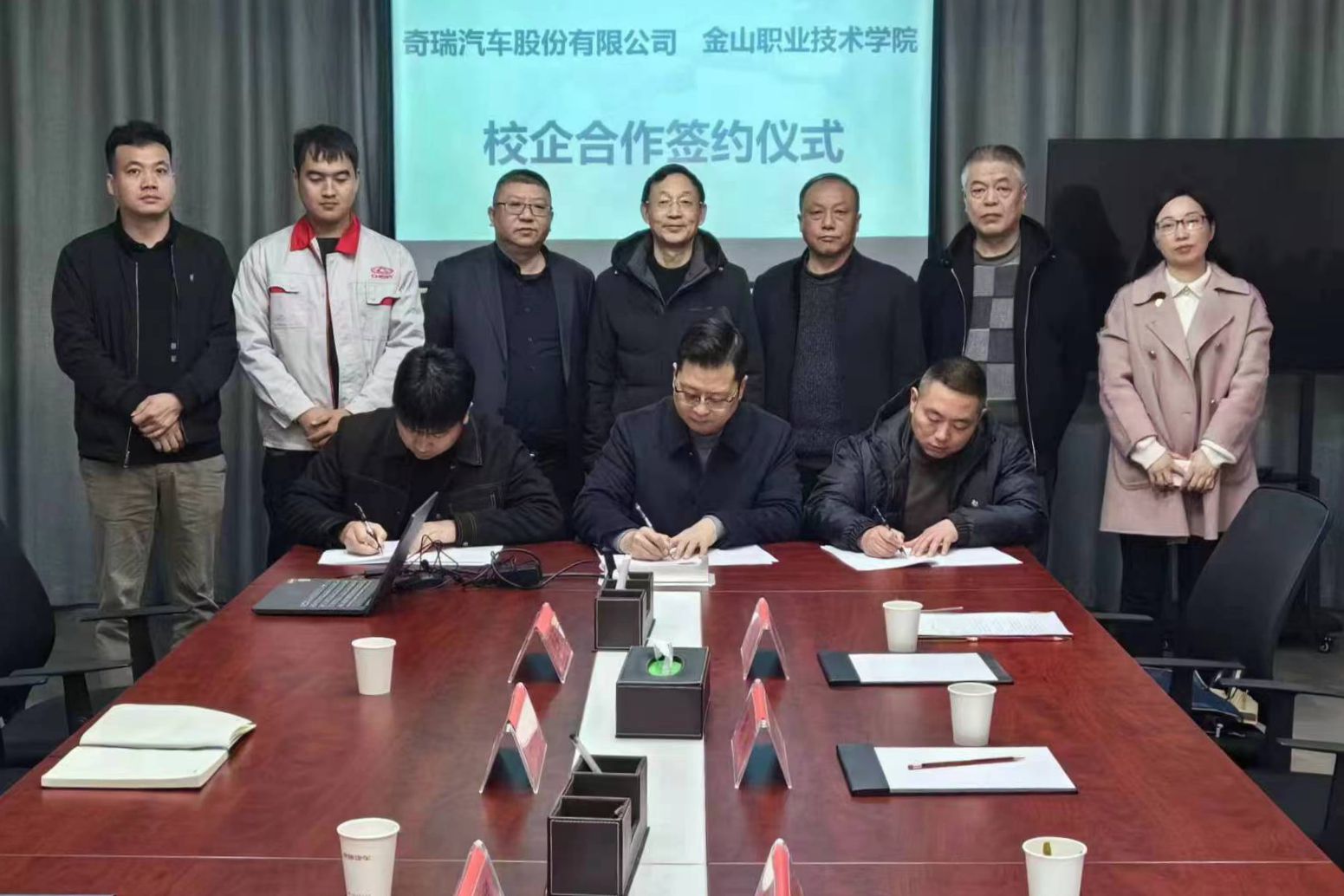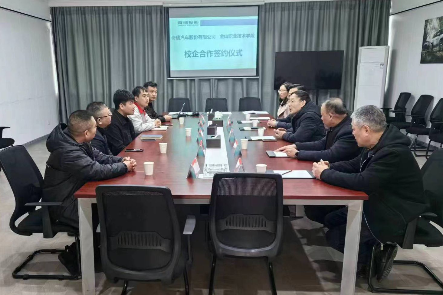 3月20日上午,学院与奇瑞汽车股份有限公司在奇瑞公司会议室成功举行校企合作签约仪式。奇瑞公司代表杜文凯、王通,我院执行院长朱小明,副院长林雨生🏌🏿、陈刚,党政办主任常霞🪳☘️、机电与交通系主任郑秋平出席本次仪式🥴。