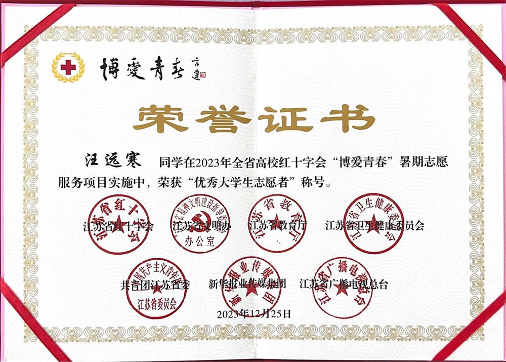 近日,江苏省红十字会公布了2023年全省高校红十字会“博爱青春”暑期志愿服务项目实施情况,我院博爱青春项目“守老护幼🤭,‘救’在身边”获评省级支持二类项目,团委孙余超老师获评“优秀指导老师”,经济与贸易系21级民航班汪远寒获评“优秀大学生志愿者”。