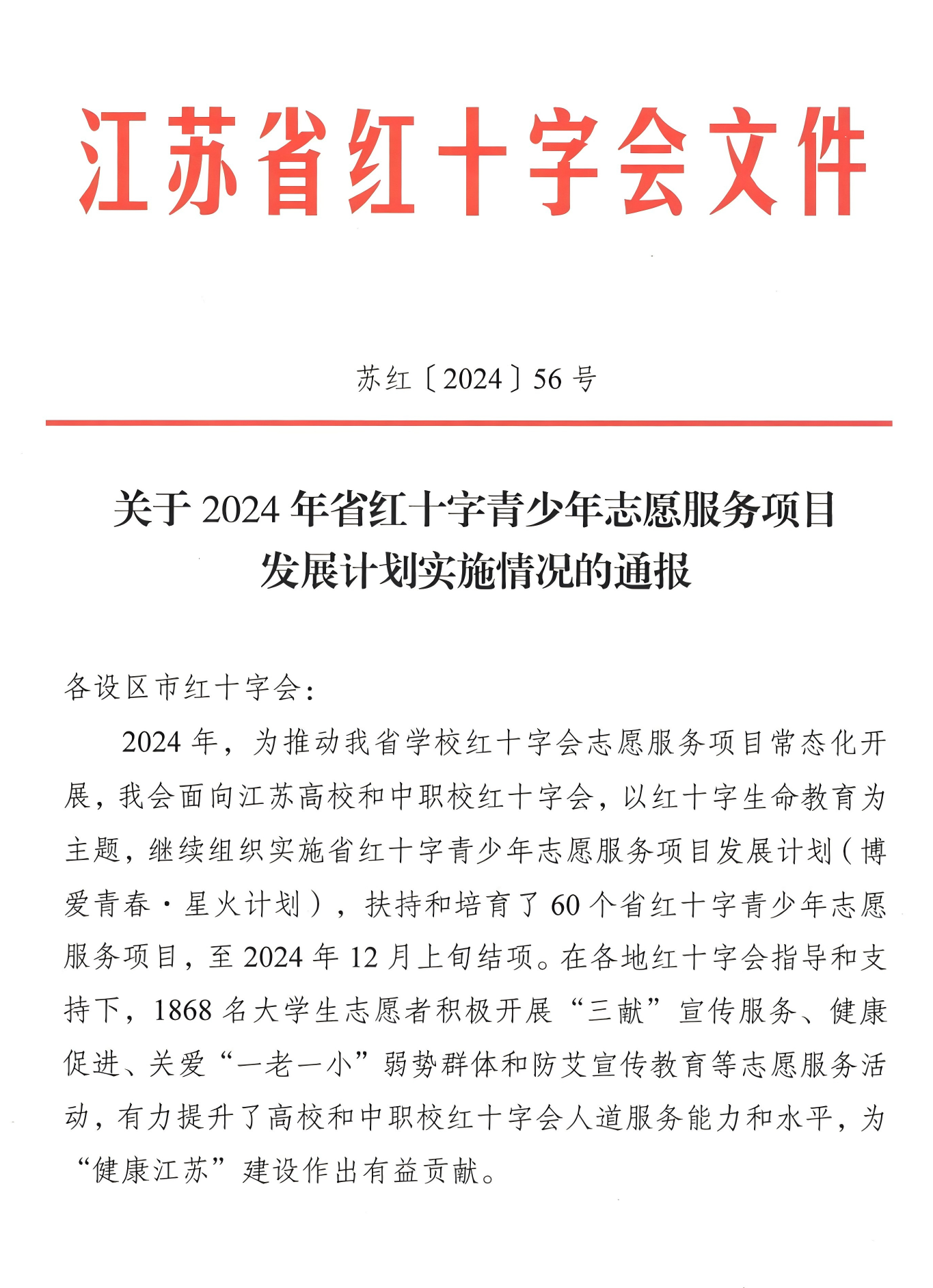 近期🫨,江苏省红十字会公布2024年省红十字青少年志愿服务项目发展计划获奖项目名单,我校“博爱环岛·...