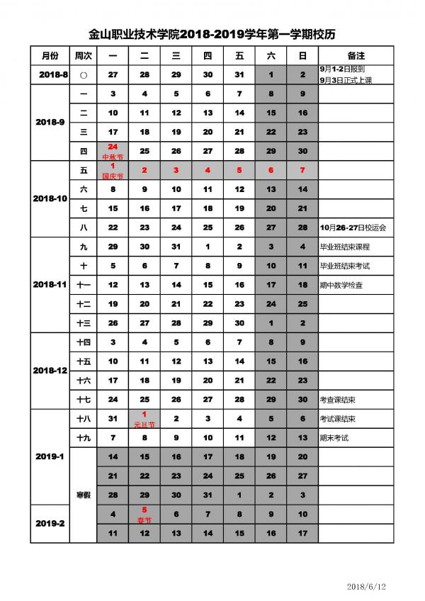 彩神2018-2019学年校历