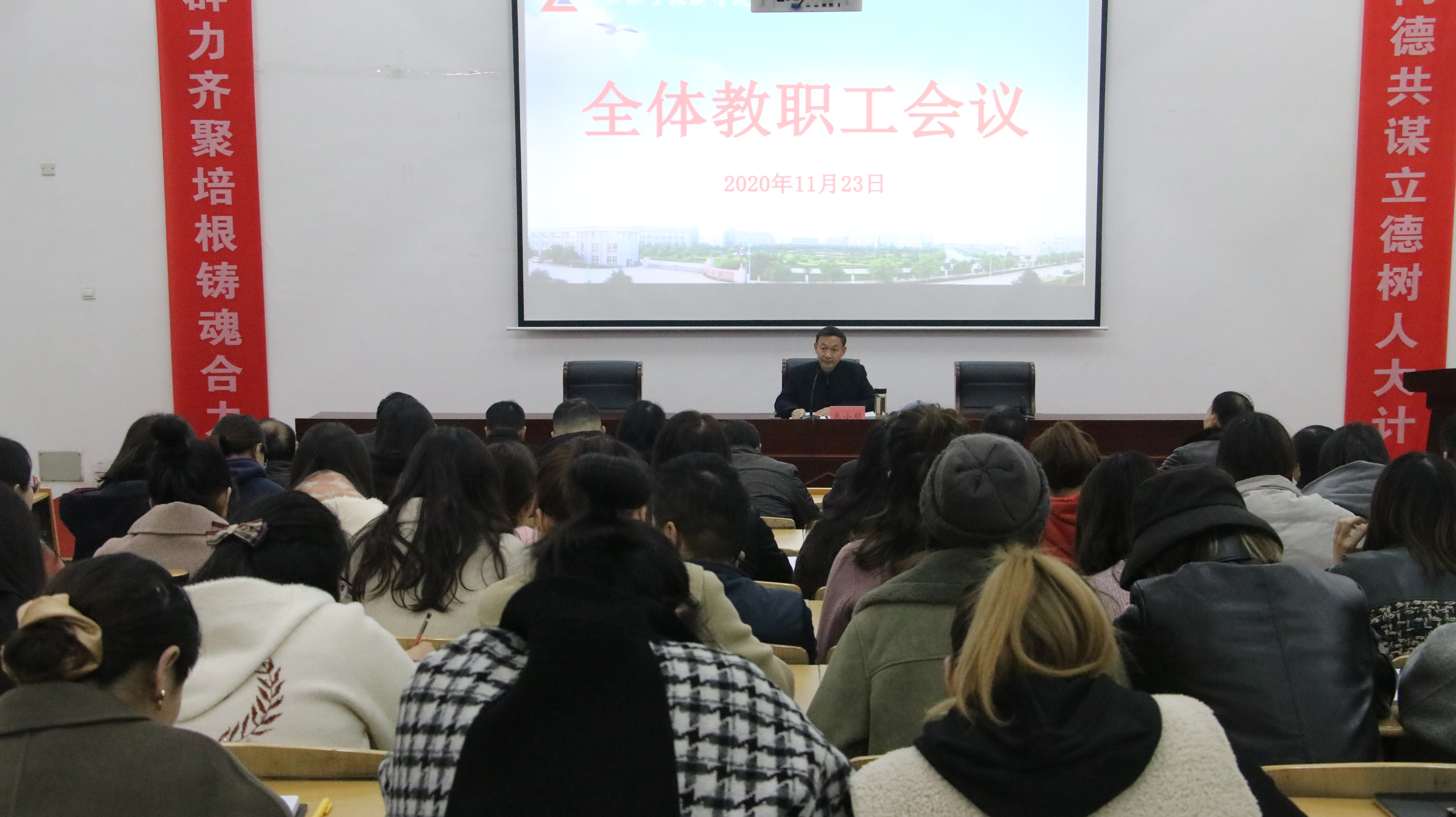 11月23日下午,我院在2号教学楼金山学堂召开全体教职工大会。学院党政领导班子全体成员、全院教职工参加会议。