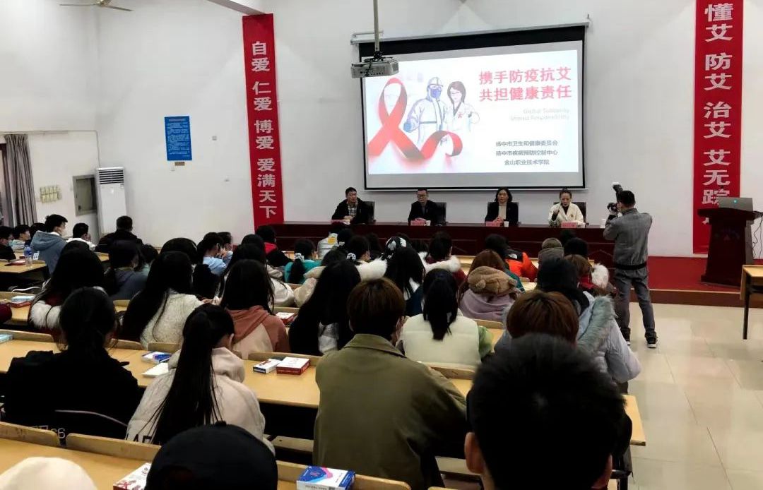 11月30日下午,扬中市疾控中心和我院团委在金山学堂共同举办了“携手防疫抗艾,共担健康责任”校园抗疫防艾专题讲座🎧。