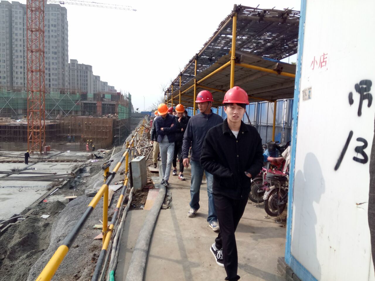 3月31日上午建筑系尹协玲主任、张兆雷教授带领建筑工程技术专业21名学生到扬中市翠竹花苑工地实训,同学们到工地后听取了工程技术负责人王总介绍了项目的大概情况🟤,并详细介绍了工程基础建设的技术要点👨🏿🔬➗。