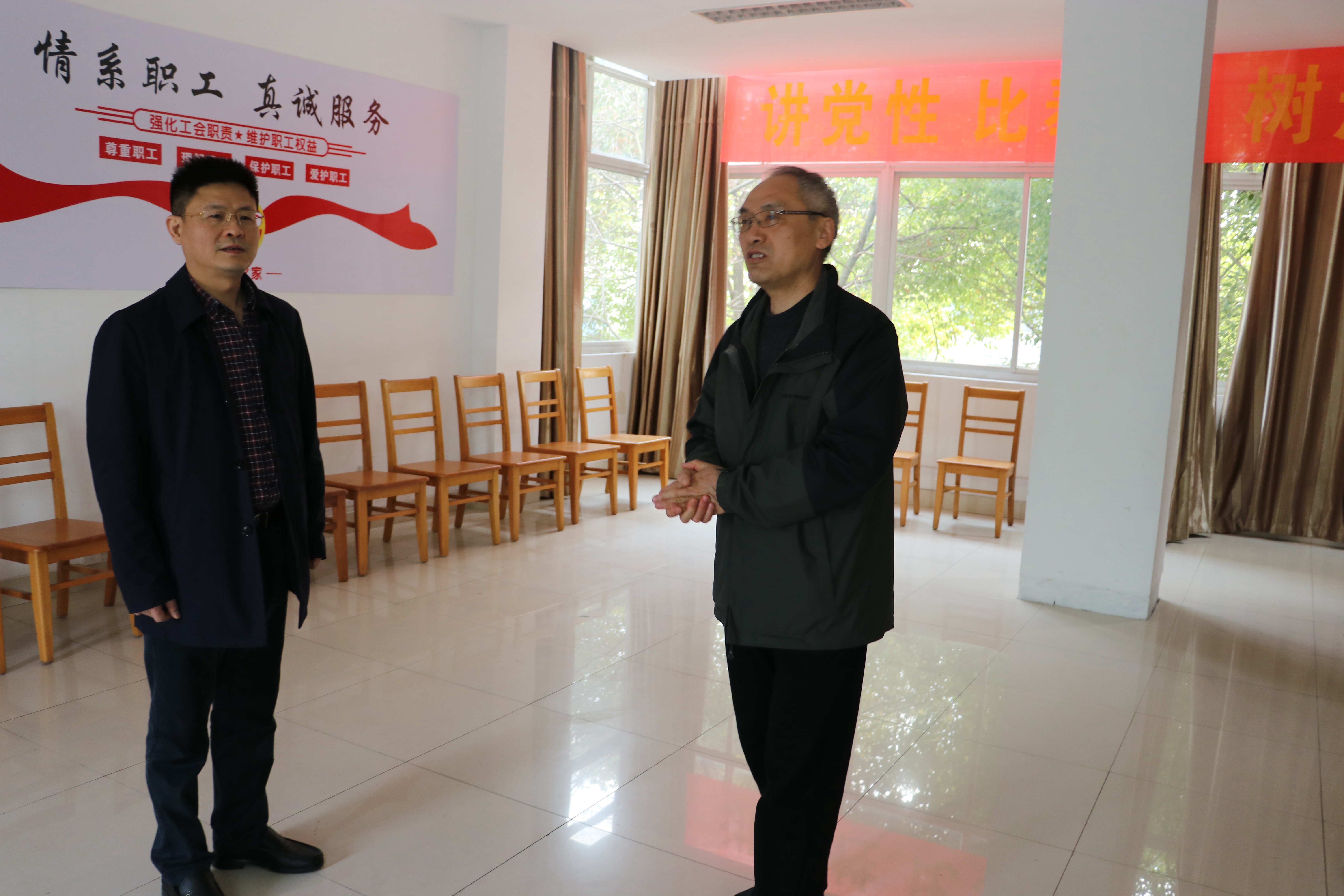 管拥军一行参观了我院职工宿舍、“职工之家”⛹️♂️、职工法制教育教育基地等场所,并以座谈会的形式听取了学院领导对工会工作情况的介绍。