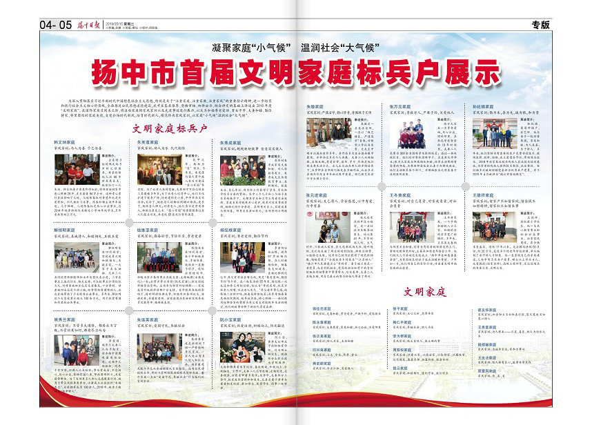 为深入贯彻落实习近平新时代中国特色社会主义思想,特别是关于“注重家庭🕋🆔、注重家教⁉️、注重家风”的重要指示精神🤌🏼,进一步培育和践行社会主义核心价值观✍🏼,全面推进公民思想道德建设,扬中市在基层推荐、资格审核、初评公示、综合评定的基础上评选出2018年度“文明家庭”🫲🏼👈。