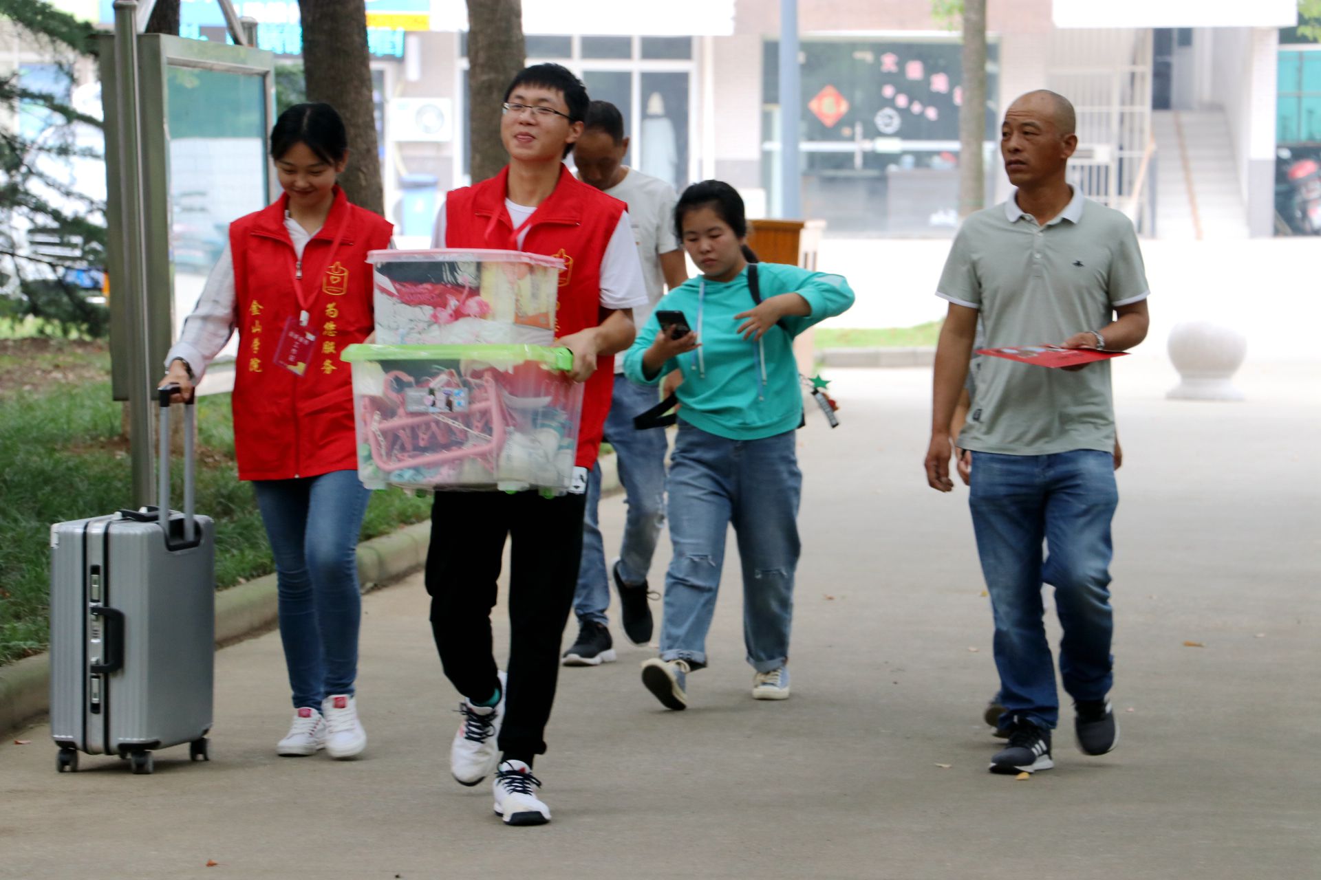 八点左右🦉𓀂,人群涌动⚛️,新生陆陆续续入院报道🥩。对于新生们而言,这样一个偌大的学院让他们有一些陌生,但志愿者们用一个个温暖的微笑和“你好”🤏🏿、“欢迎来到金山学院”的欢迎辞以及及时接过新生和家长们手中沉重行李的举动,瞬间融化了他们的心🛫。志愿者们那一件件整齐划一的红背心,在校园里形成了一道靓丽的风景线。