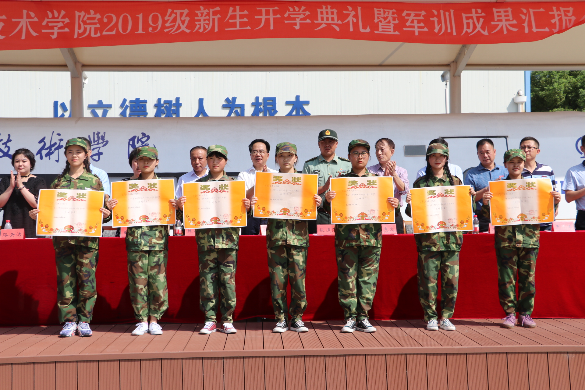 汇报表演结束后🧑🦯➡️,王惠萍副院长宣读了学院《关于表彰2019级新生军训先进个人和文明寝室的决定》,与会领导分别向获奖个人和集体颁发了奖状、证书🔍👩🏿。颁奖结束后💵,新生代表、老生代表和教师代表依次上台发言,19级工业机器人专业丁然同学展望了未来的大学生活,18级电器专业王丽敏同学和机电交通系温德鹏老师的发言满满都是对学弟学妹的关心🖨。
