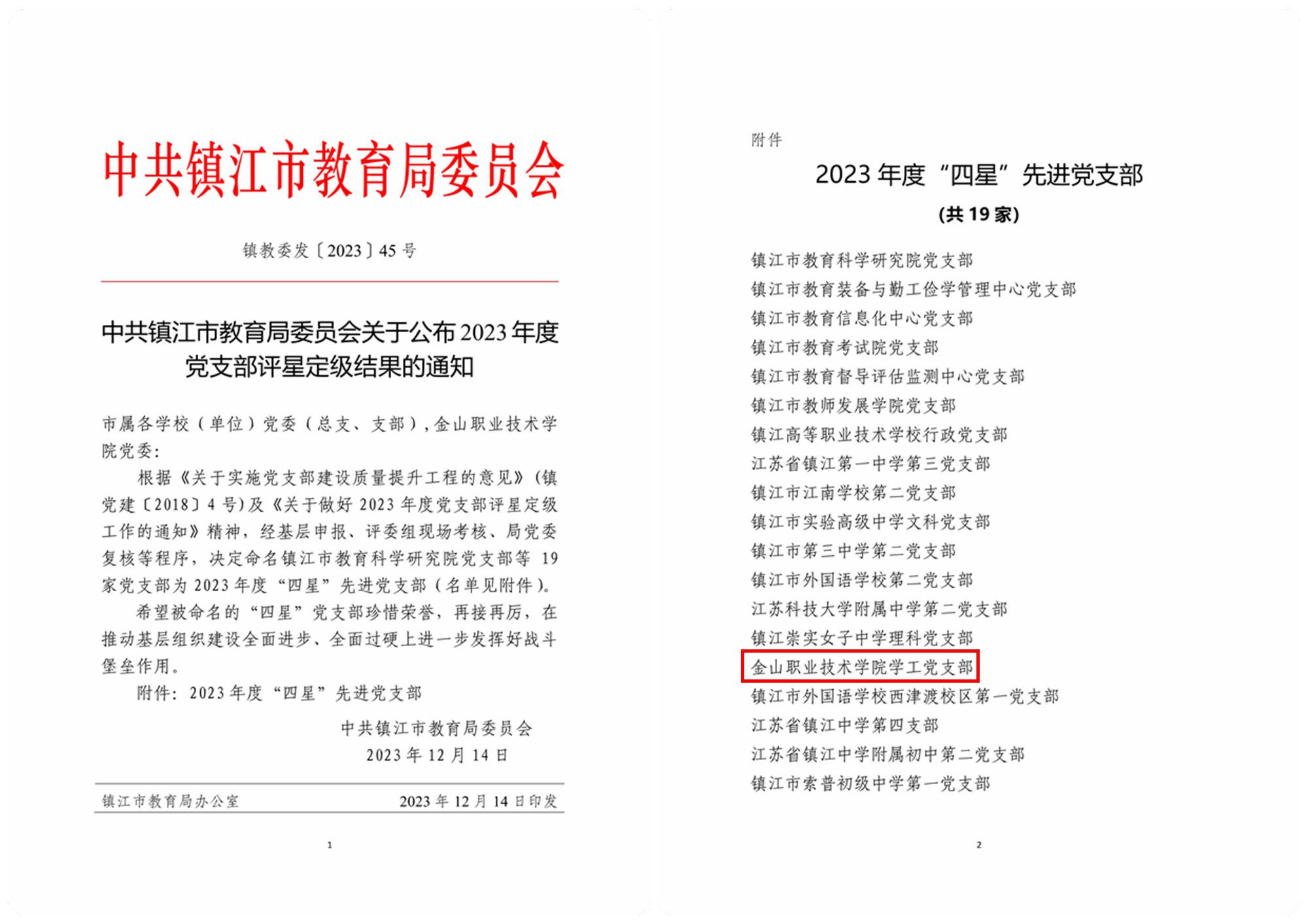 近日,镇江市教育局印发《中共镇江市教育局委员会关于公布2023年度党支部评星定级结果的通知》🦍,其中彩神学工党支部获评为2023年度“四星”先进党支部!