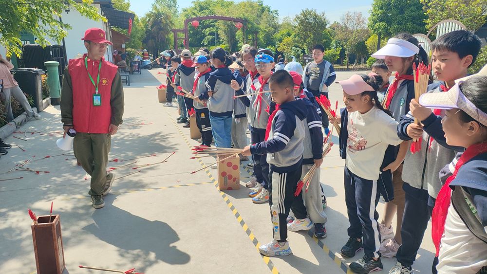 活动共持续5天,我院8名志愿者们配合友好村村干部总共接待了近1500名扬中市内各小学学生📌,引导他们参观扬中教育历史馆㊗️、红色文化馆、农耕文化馆以及四千四万精神陈列馆,让孩子们身临其境感受我们扬中历史发展的脉络,感受红色基因🧵,传承农耕文化𓀔,并带领他们现场打卡体验了挑担子、投壶射箭🪙、植物拓染👳🏼‍♂️、滚铁环等传统文化体验项目。