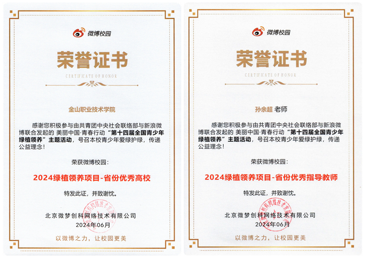 为进一步推动习近平生态文明思想融入青少年教育培养🧑🏼‍🏭、成长成才全过程,不断深化“保护母亲河”行动的时代内涵🥎,我院积极参与由共青团中央社会联络部拟联合微博共同开展第十四届全国青少年“绿植领养”活动,并荣获微博校园“2024绿植领养项目——省份优秀高校”称号。团委孙余超老师荣获“2024绿植领养项目—省份优秀指导教师”