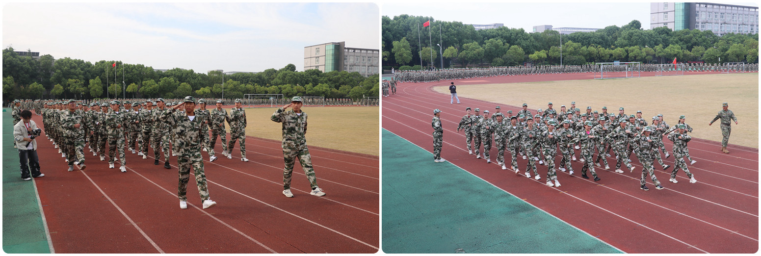 (学院党委书记徐铭下达军训分列式表演“开始”指令)