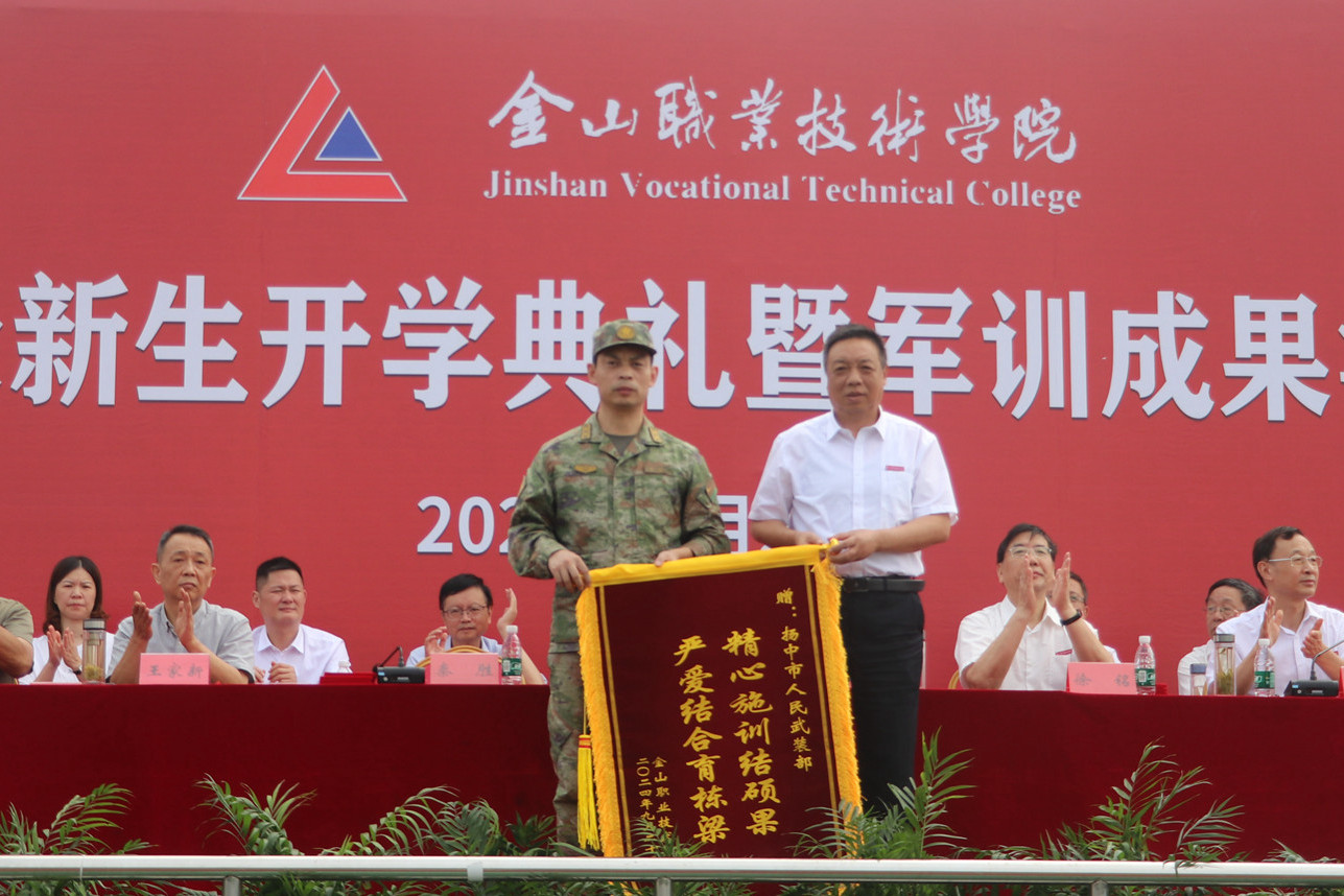 为了感谢承训单位在军训期间对我院新生的辛勤指导,学院理事长印斌代表学院向承训单位赠送锦旗。