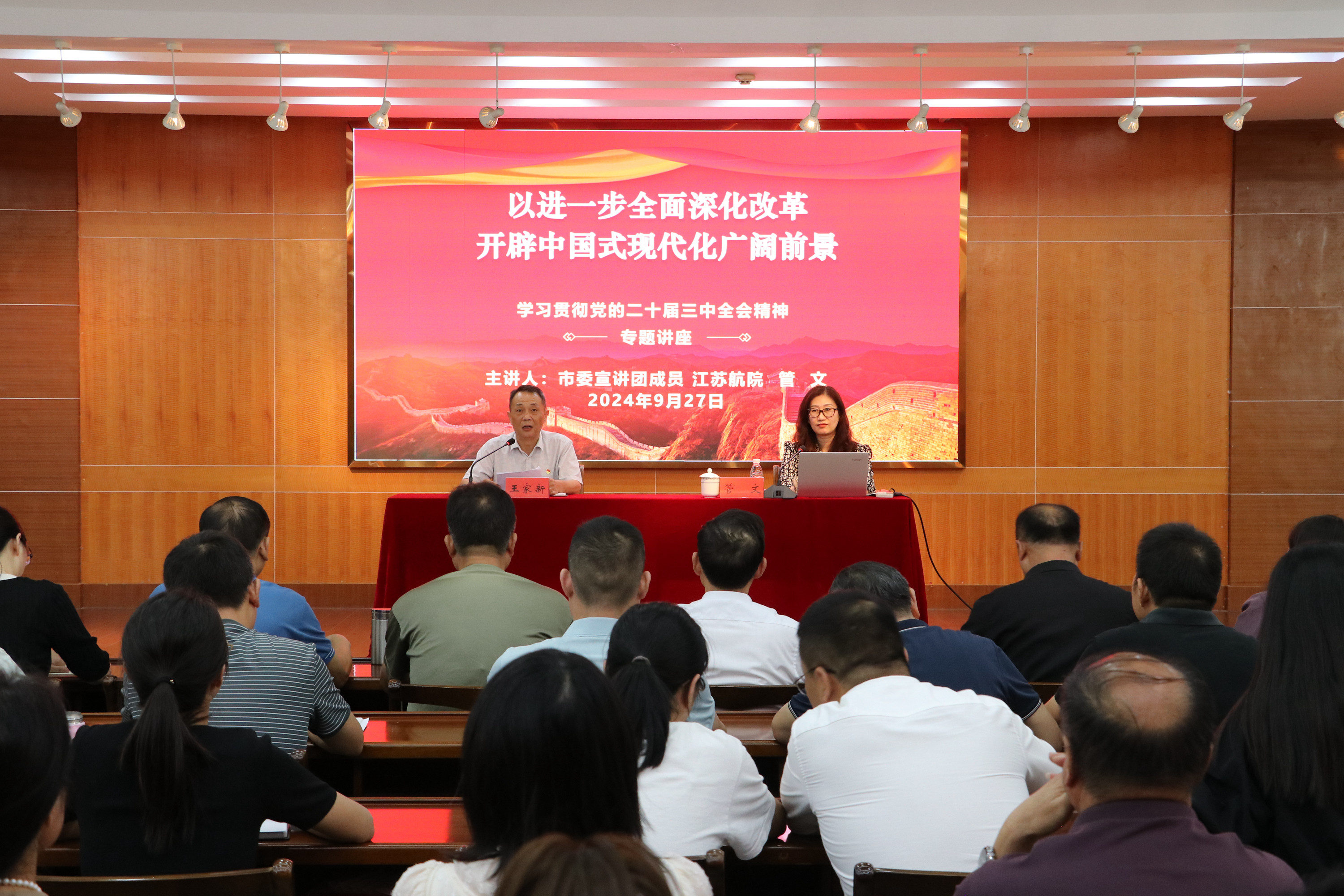 为深入学习贯彻党的二十届三中全会精神🫃🏿,推动党的创新理论在金山校园生根结果,2024年9月27日,市委宣讲团成员🏠、江苏航空职业技术学院副教授管文来到我院🧝🏿♀️,作学习贯彻党的二十届三中全会精神专题讲座。学院领导班子全体成员、全体中层干部及党员教职工参加活动。活动由学院党委副书记🩵、纪委书记王家新主持。