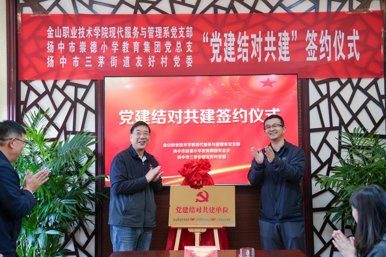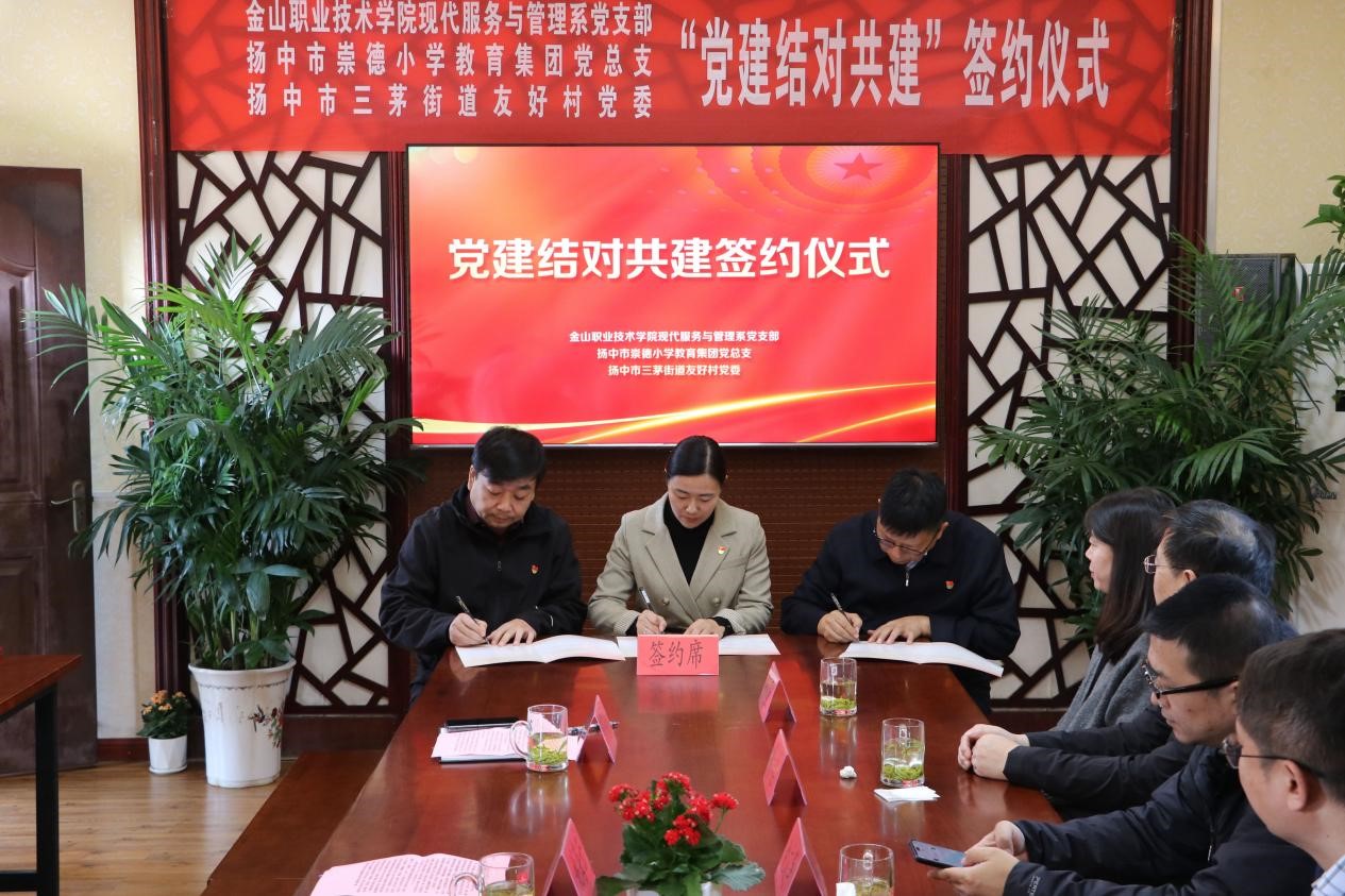 1030日👆🏻,彩神现代服务与管理系党支部🙋、扬中市崇德小学教育集团党总支与扬中市三茅街道友好村党委共同开展了“党建结对共建”签约仪式,标志着三方在党建引领下深度合作的新篇章正式开启。