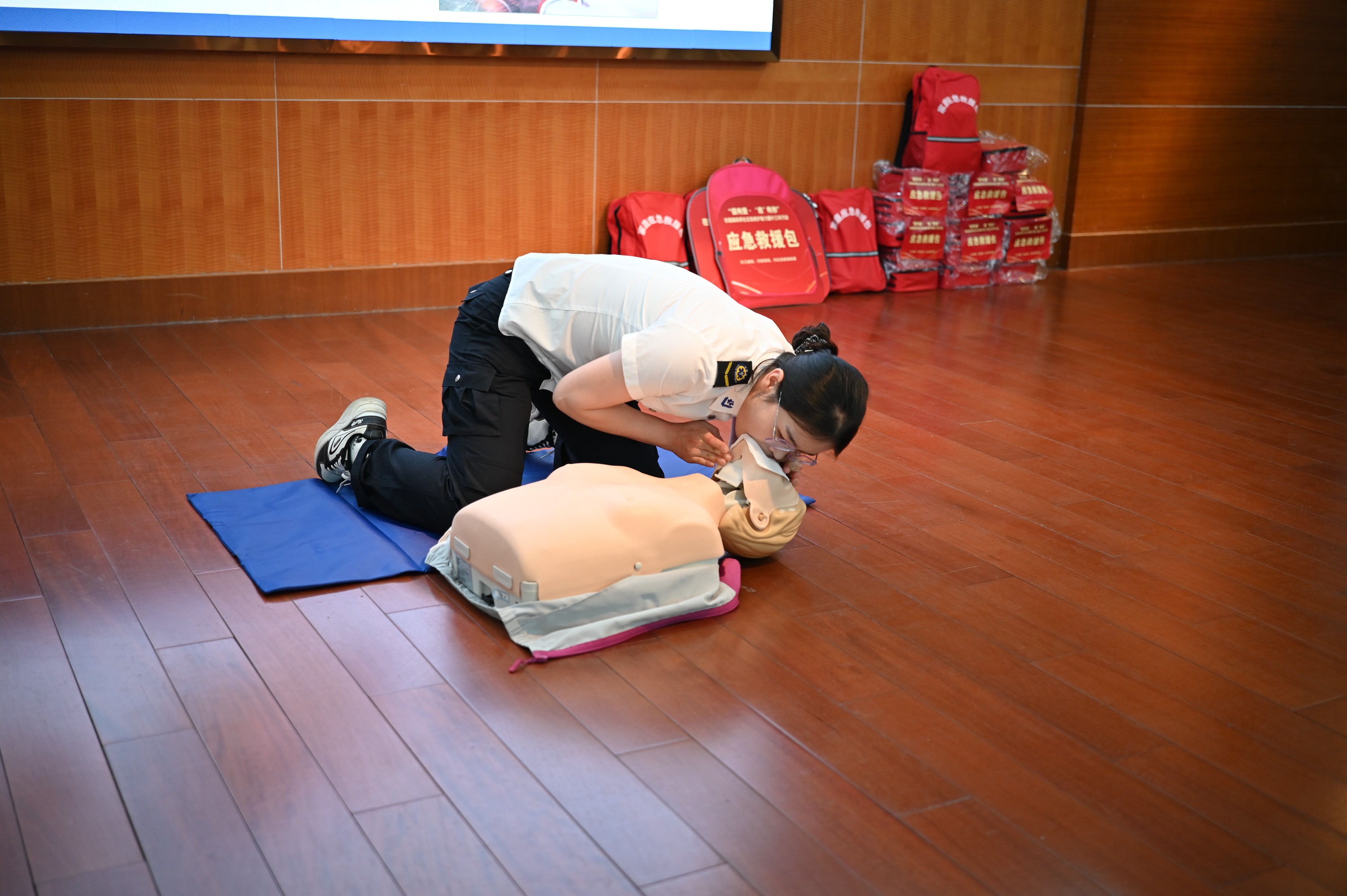启动仪式结束后,专兼职辅导员、宿管、保安在培训导师的指导下进行了心肺复苏、AED使用、创伤处理⛅️、海姆立克法等急救技能培训🫵🏽。培训采用“理论讲解+分组实操+考核指导”模式,学员们在指导下反复练习,确保每个动作规范到位,切实掌握“救命技能”🏫。