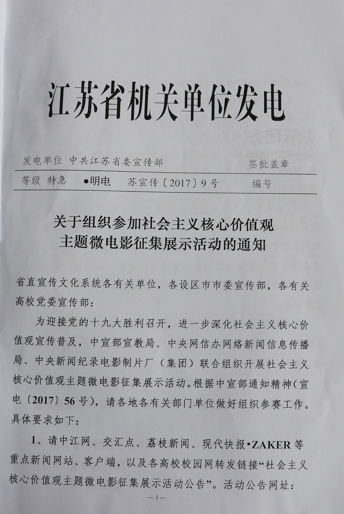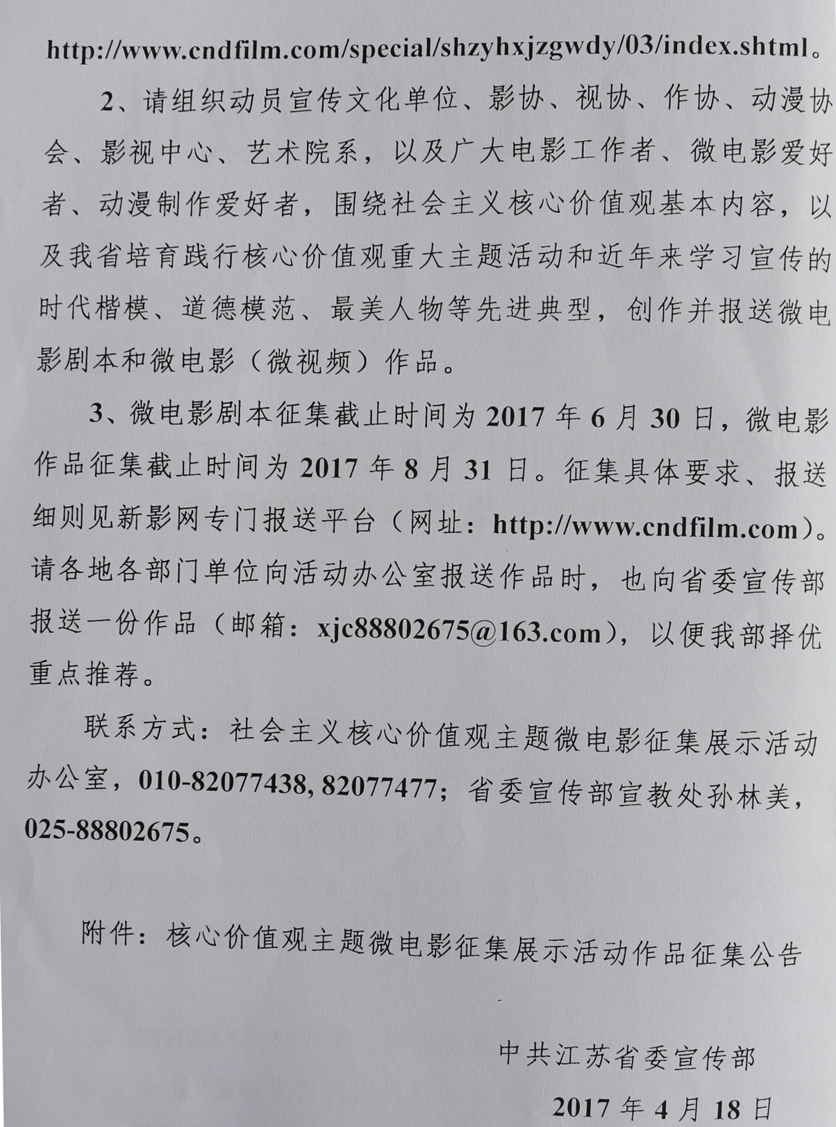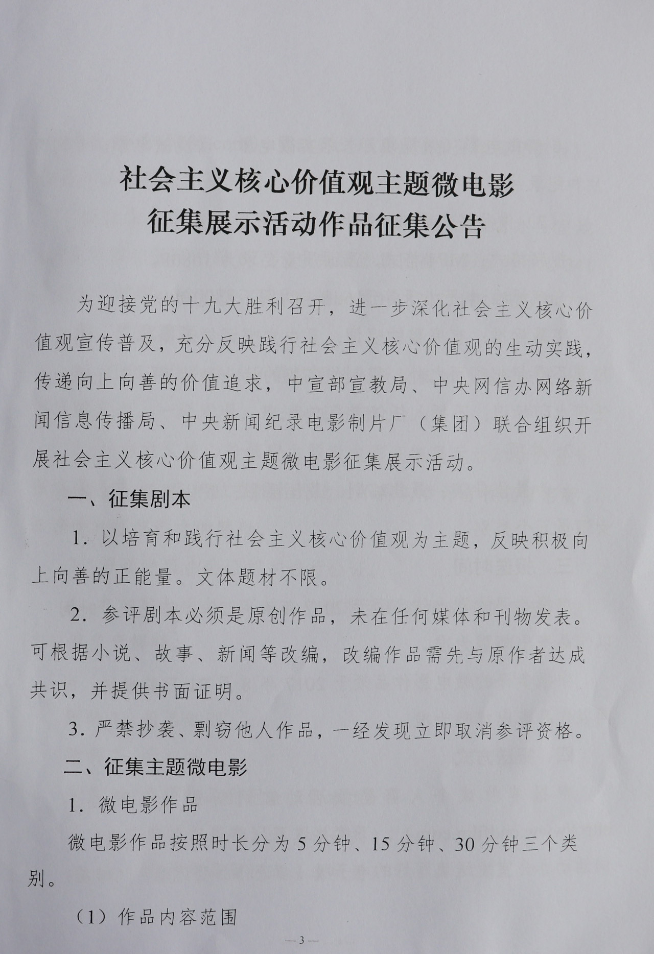 关于组织参加社会主义核心价值观主题微电影征集展示活动的通知