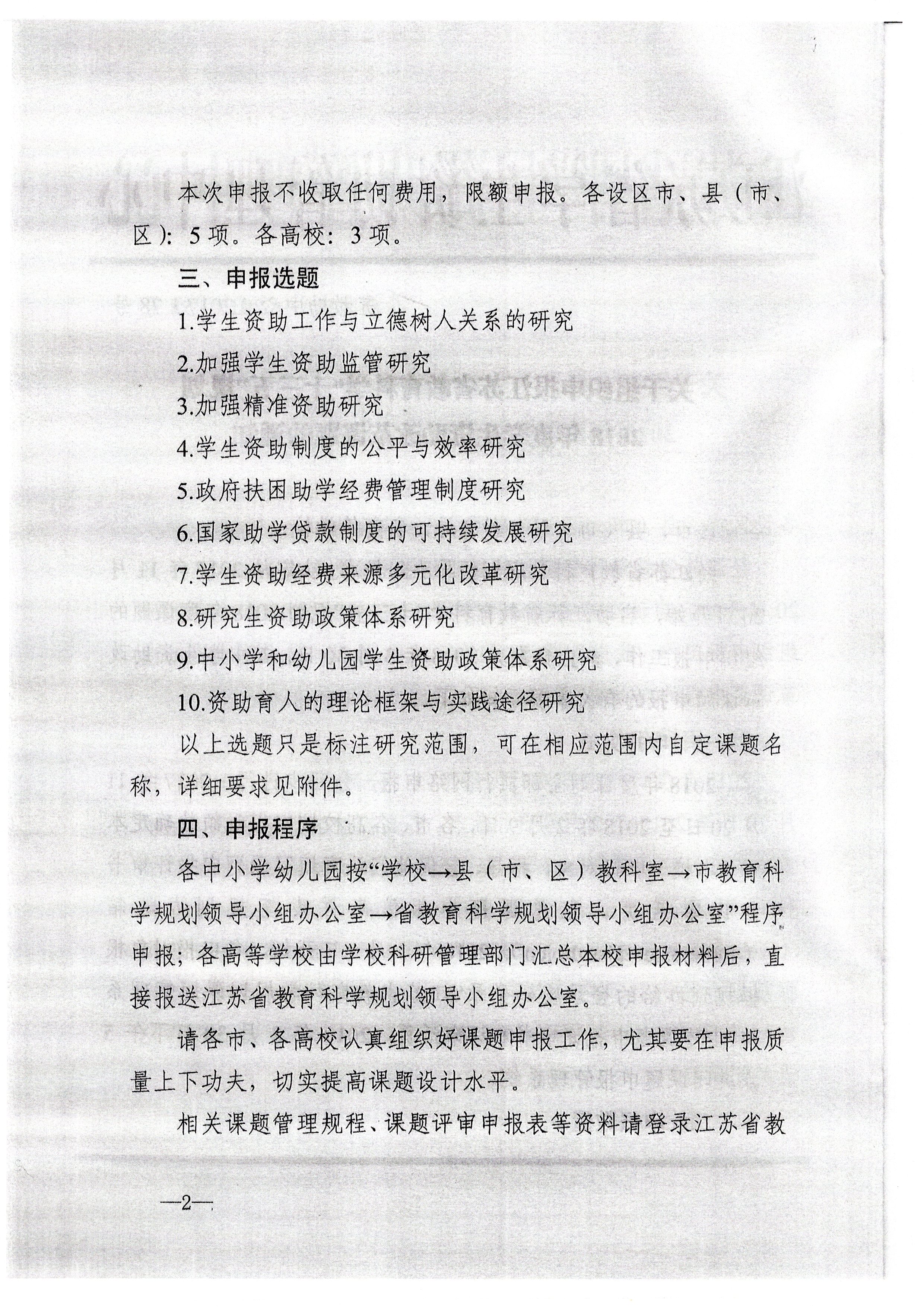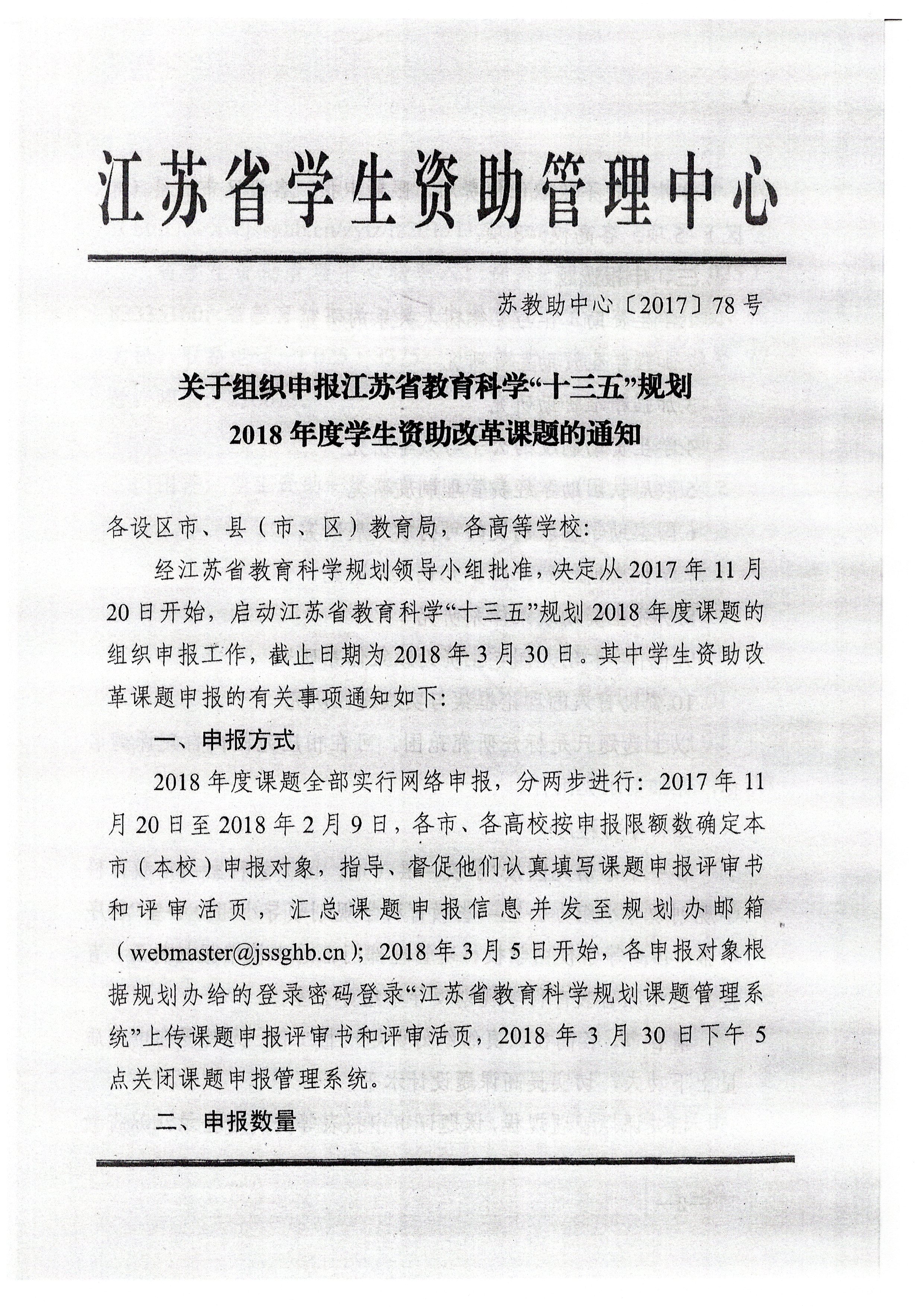 关于组织申报江苏省教育科学“十三五”规划2018年度学生资助改革课题的通知